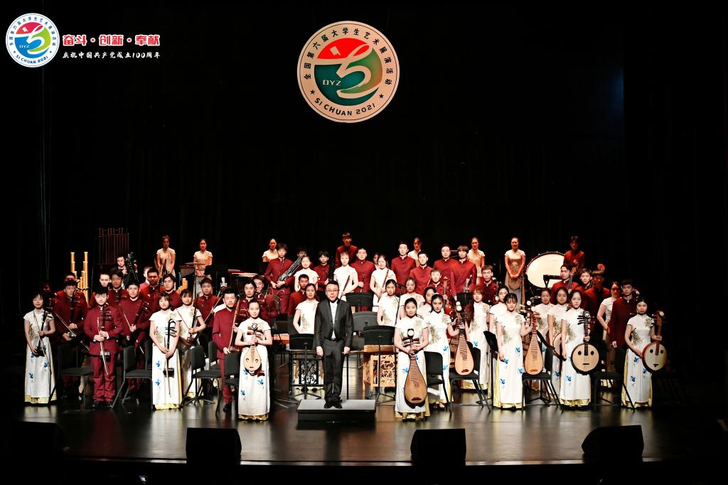 5月8日晚,我校学生民乐团参加全国大艺展民乐项目现场展演,精彩演绎民乐合奏《楼兰意象》。同济学子用民乐合奏《楼兰意象》致敬灿烂中华文明,展现传统音乐之美、多元文化之美,深植构建“人类命运共同体”的理想。此次参演的60名学生来自19个学院,均为非艺术专业的学生,年级覆盖从本科一年级到博士研究生二年级。自去年8月以来,民乐团的学生们不论是每周例行排练,还是法定节假日的集训,都风雨无阻,齐聚排练厅。本次赴蓉参赛,民乐团的全体成员更是参与到人员管理、乐器清点、后勤医疗等每一环节中,各有分工,做到人人有责,人人参与,人人尽力,为比赛顺利进行夯实基础。