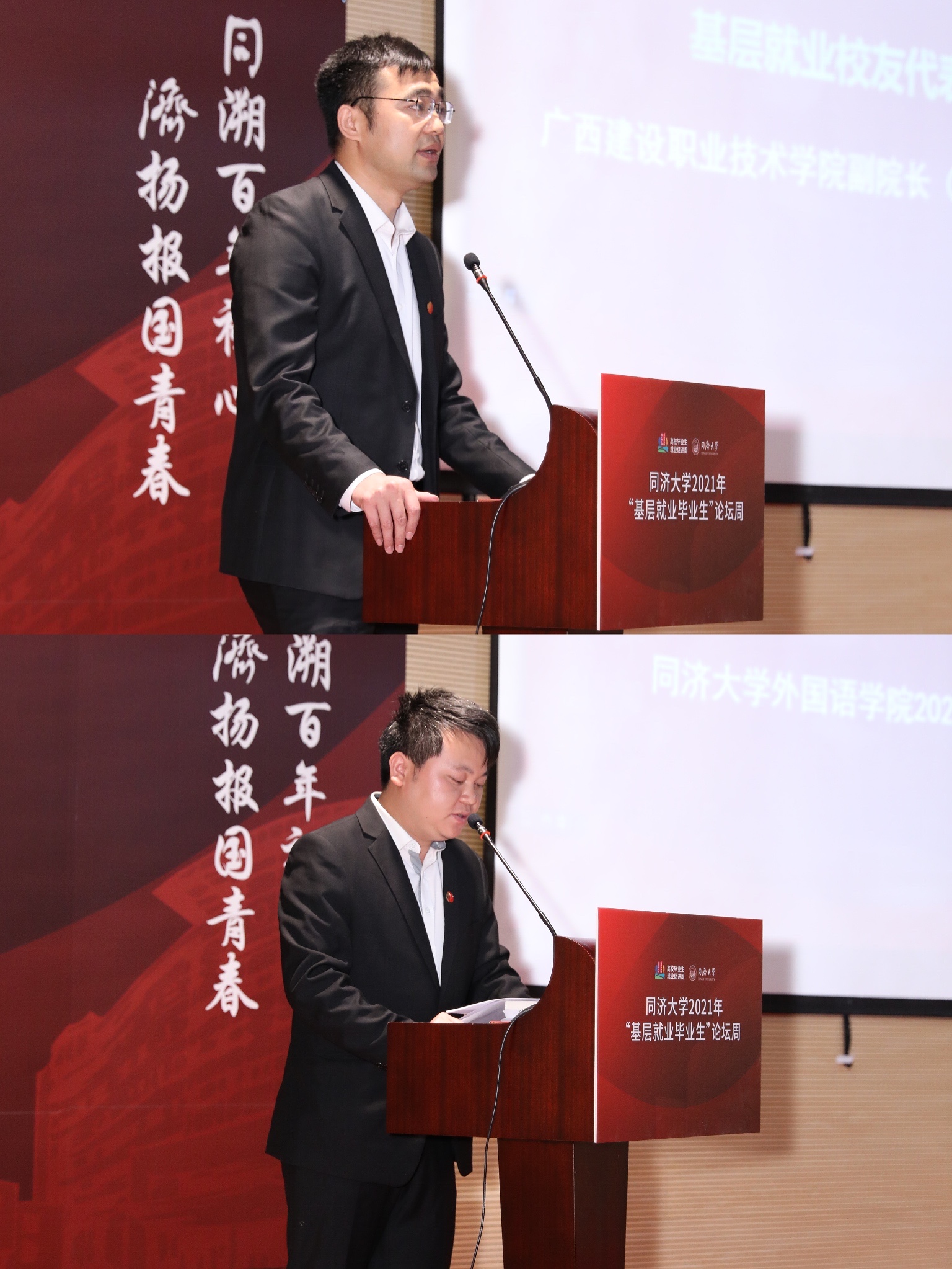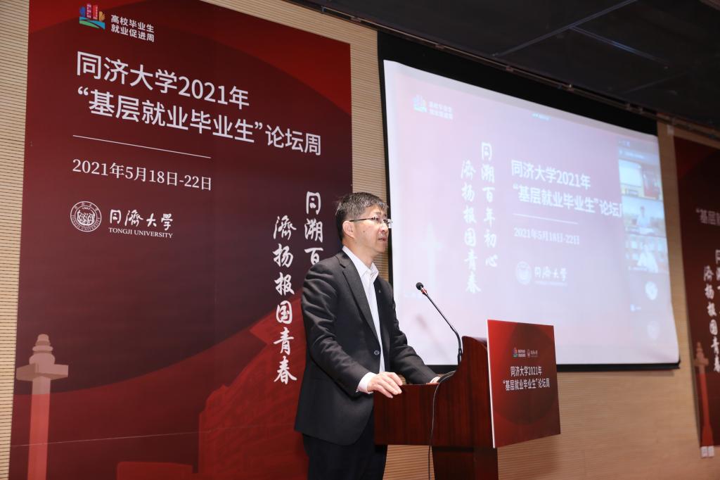 彭震伟在致辞中表示,引导和鼓励高校毕业生面向基层就业是党中央、国务院从党和国家事业发展全局出发作出的重要决策,也是高校落实立德树人根本任务的重要举措。同济大学始终秉持“与祖国同行,以科教济世”的办学传统,多举措引导鼓励毕业生扎根基层,基层就业工作取得显著成效。今年是中国共产党成立100周年,广大同济学子要以党史学习教育为契机,胸怀家国、济世兴邦,肩负起新时代的责任与担当。他以“基层广阔天地,青春大有作为”寄语同济学子,希望在校学生能明确人生航向,提升就业能力,选择到基层去建功立业,希望基层就业校友能不忘初心,加强学习,做到理论与实践相结合,为地方经济社会发展作出更大贡献。