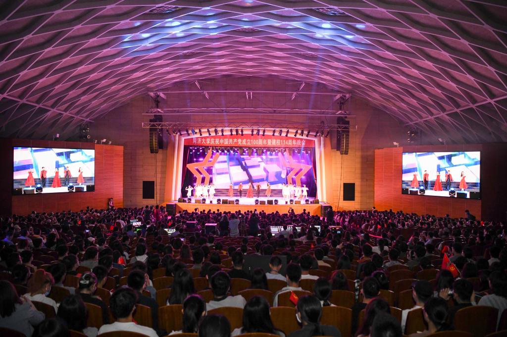 5月20日晚,以“初心济前路,永远跟党走”为主题的同济大学庆祝中国共产党成立100周年暨建校114周年晚会在四平路校区大礼堂举行。校领导方守恩、陈杰、冯身洪、吴广明、方平、雷星晖、彭震伟、娄永琪出席,与学校各职能部门、学院、直属和附属单位负责人,以及师生代表2300余人共同观看晚会。