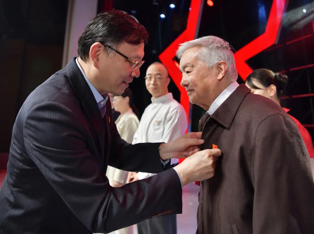 回首百年光辉历程,同济人始终坚定如磐信仰,红色基因代代相传。校党委书记方守恩为阮仪三、周怀阳、陈大文、朱兴一、郭浩越、李翀、 张怀尹7位老中青师生党员代表佩戴党徽,让信仰的力量在同济人中接续传承。