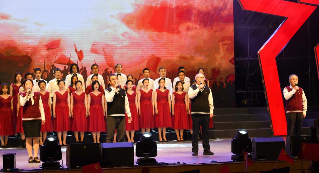 《东方红》《井冈山下种南瓜》《咱们工人有力量》《在希望的田野上》《我们走在大路上》《在灿烂阳光下》……由学生代表、教师代表、退休教师合唱团、附属实验小学、后勤集团、保卫处教职员工等百余人放声高歌的《百年礼赞》,用一曲曲耳熟能详的经典旋律回顾了中国共产党带领全国人民夺取革命、建设、改革重大胜利的光辉历程,唱出了同济人科教报国的壮志豪情、迈向新征程的理想希冀。