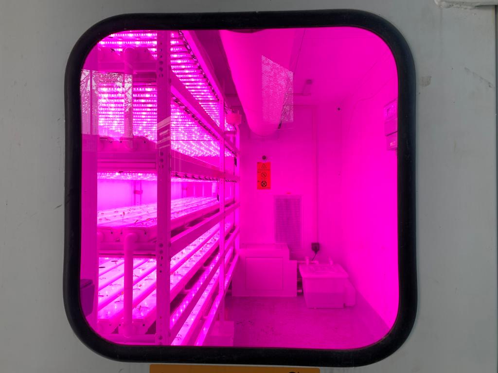 蔬菜种植舱是由同济大学智能环境团队研究开发的高度智能化的集装箱植物种植系统,该系统包括集装箱体、栽培系统、空调系统和智能控制系统等。栽培系统采用了先进的营养液栽培架、植物LED生长补光灯和自动水肥一体化灌溉系统,保证了植物在受控环境中能够获得良好生长。种植舱内采用了先进的新风空调系统,以一体机模块化的形式减少空间占用,且结合加热、降温、除湿和加湿等功能,优化系统配置,降低运行能耗。此外,还开发了集装箱植物种植系统的智能化整体监管系统,实现了植物生长环境、营养液配置供应和空调机组运行协同调控的集中、高效的特点,并运用互联网+技术,将所有的数据上传至云平台,从而能通过移动终端对集装箱植物种植系统进行远程监测和系统设定操作。