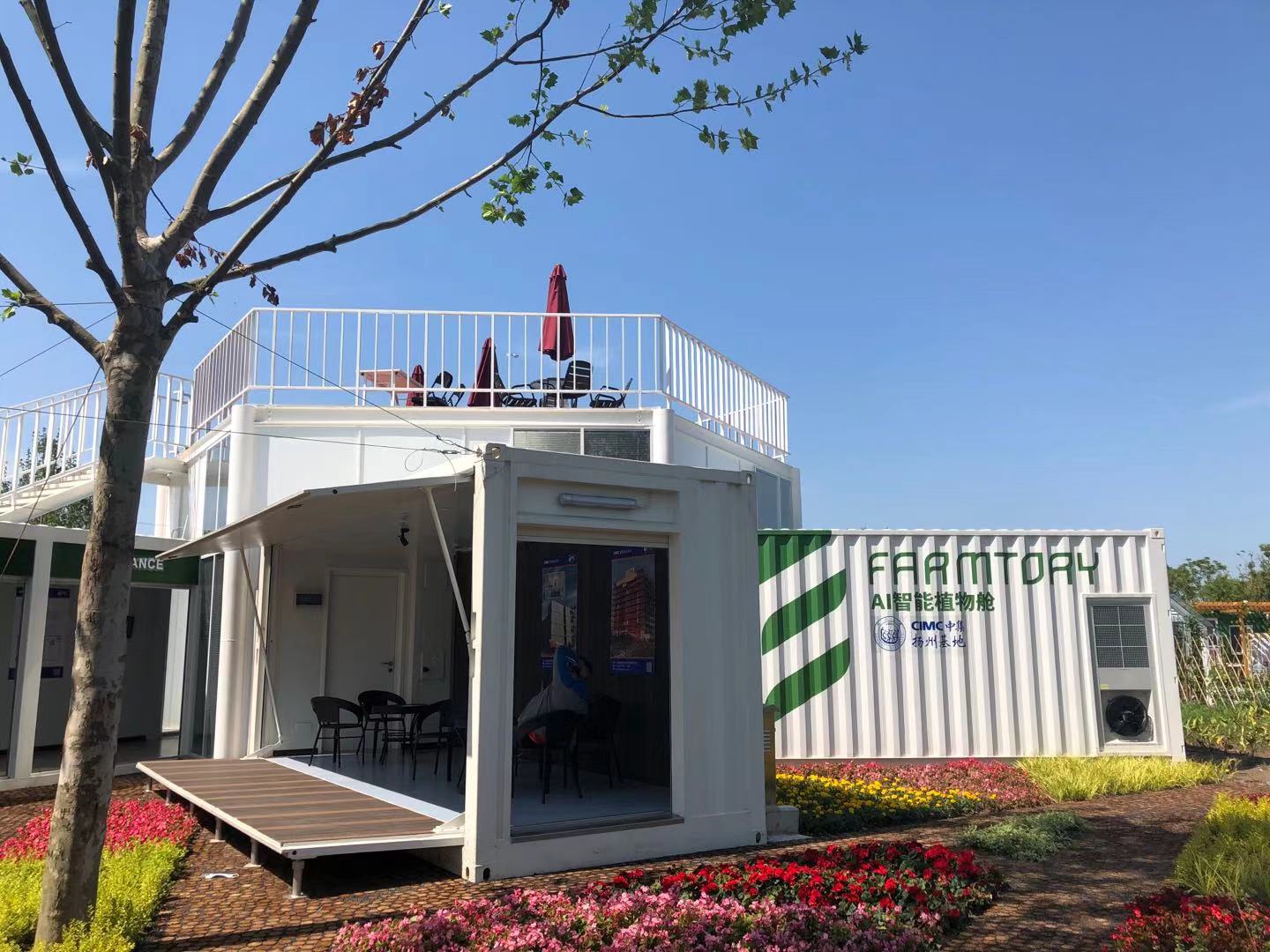 “中集花园”展区以“梦笔生花”为主题,与花博会的主题相呼应,利用人工智能技术,结合光、热、水肥和气体调控系统,营造适宜植物生长的环境,实现无土化种植。“生花”而非“移花”,是展馆的鲜明特性。展馆以集装箱形式为载体,分为光伏太阳能舱、风能发电舱、模块化轻食舱、蔬菜种植舱等多个舱体进行展示。可再生能源的使用将为之后人工环境下的种植提供更节能减排的低碳可靠方案。
