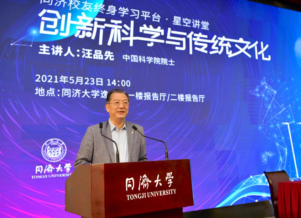5月23日下午,同济校友终身学习平台·星空讲堂第八讲暨114校庆专场开讲,著名海洋地质学家、海洋与地球科学学院汪品先院士作了题为《现代科学与传统文化》的报告。近500名校友与师生齐集同济大学四平路校区逸夫楼,全国各地16个城市的校友在当地分会场集合,更多校友早已在手机上保存好了直播二维码,在线上收看。