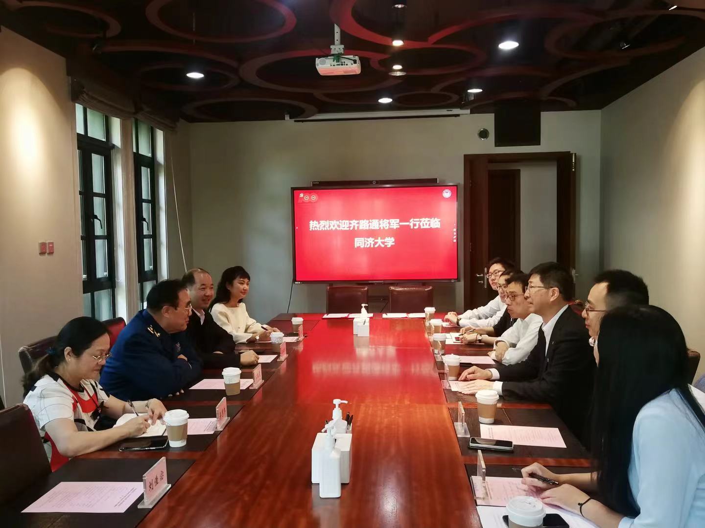 报告会前,校党委副书记彭震伟与齐路通少将一行进行座谈。双方围绕党史学习教育、校外专家进校园、我校大学生为红色文化展馆开展志愿讲解服务、用好红色资源并做好红色文化的国际传播等方面展开了交流讨论。