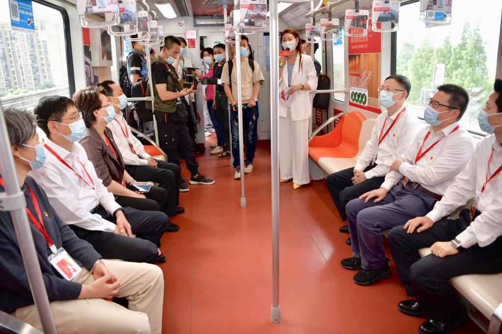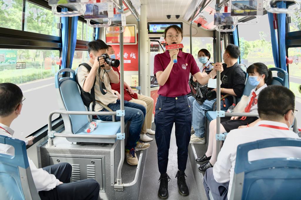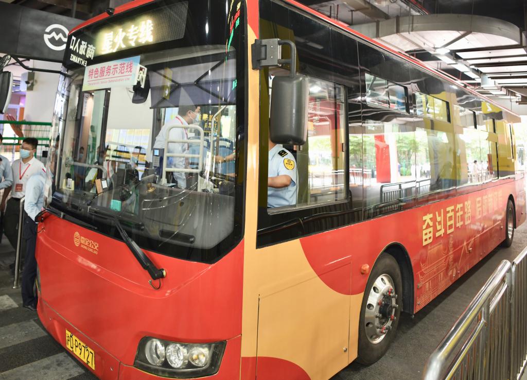 启动仪式结束后,与会领导参观了南翔站的红色文化主题展览。随后,领导们登上地铁11号线列车,体验地铁车厢中嘉定的红色文化、地标建筑展示等。在嘉定新城公交枢纽,随着首辆“星火专线”公交车缓缓驶出,与会领导和学生、市民代表作为首批“星火专线”乘客,体验了红色文化进公交快闪活动。上海市劳动模范陈海燕作为首发车的乘务员,首先介绍了“星火专线”的由来、意义等。同济大学交通运输工程学院学生预备党员王怡悦、学生党员吴学绵分别在首发的2辆专线车上,为乘客讲述了我国自主研发第一款红旗牌轿车的过程和烈士廖家礽的革命故事。中国故事大王、嘉定区文联副主席、曲艺工委主任黄震良,中国曲艺牡丹奖新人奖得主、上海人民滑稽剧团优秀青年演员李国靖,分别为乘客作了党史故事讲演。青少年代表分享了红色故事。