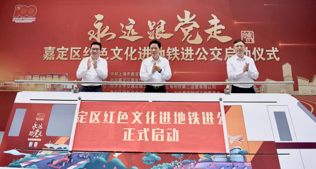 上海市委宣传部副部长、市委党史学习教育工作领导小组办公室常务副主任徐炯,嘉定区委书记陆方舟,同济大学党委书记方守恩,共同启动嘉定区红色文化进地铁进公交活动,并为嘉定公交9路“星火专线”揭幕发车。嘉定区委副书记、区长高香发布了“党史微游”线路。同济大学党委副书记吴广明为包括交通运输工程学院学生在内的红色文化志愿讲解员颁发聘书。区委常委、宣传部部长顾惠文,申通地铁集团党委副书记葛世平,区人大常委会副主任张德祺等出席活动。