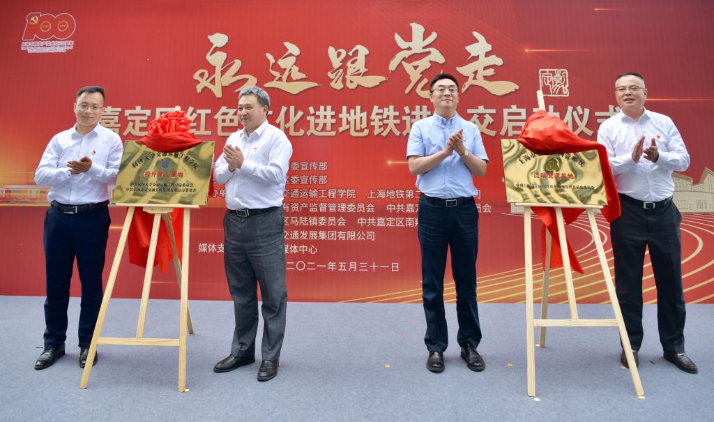 5月31日下午,由同济大学与嘉定区共同举办的“永远跟党走”嘉定区红色文化进地铁进公交启动仪式在上海地铁11号线南翔站举行。仪式上,同济大学交通运输工程学院与嘉定区有关部门共同打造的嘉定公交9路“星火专线”首发;设在嘉定区交通发展集团有限公司的“同济大学交通运输工程学院校外育人基地”揭牌。
