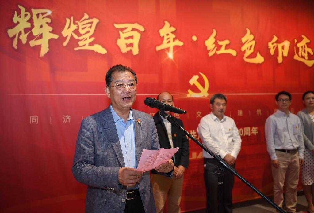 同济大学副校长雷星晖出席并宣布展览开幕。校党委宣传部、校党史学习教育第三指导组、创新创业控股有限公司、建筑设计研究院等单位负责人出席。