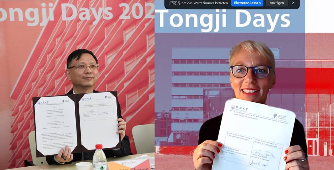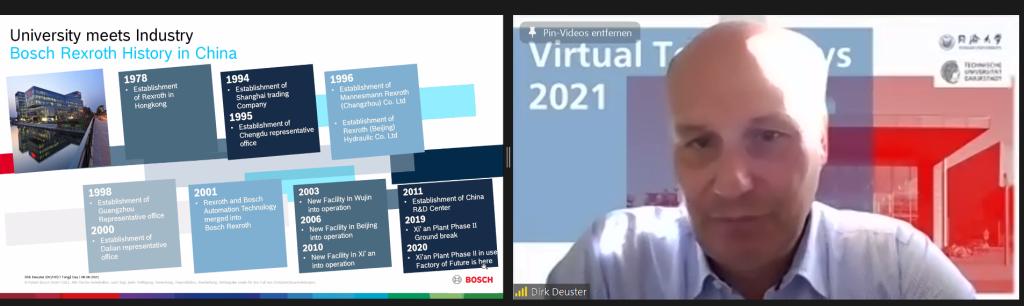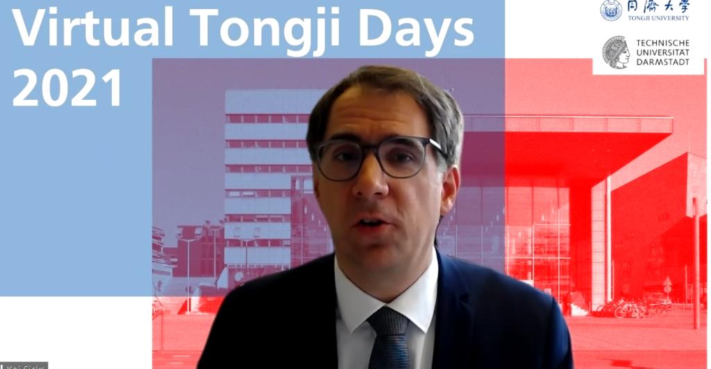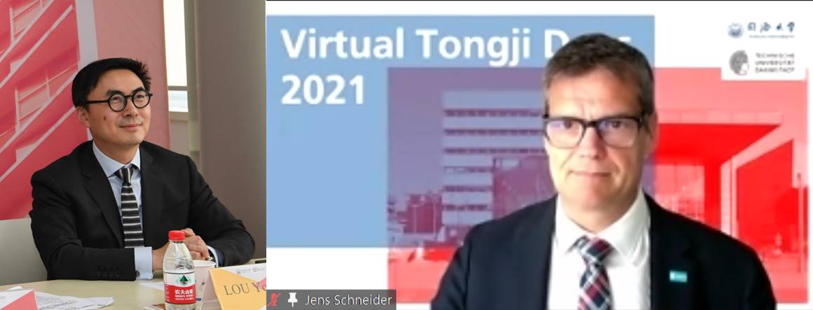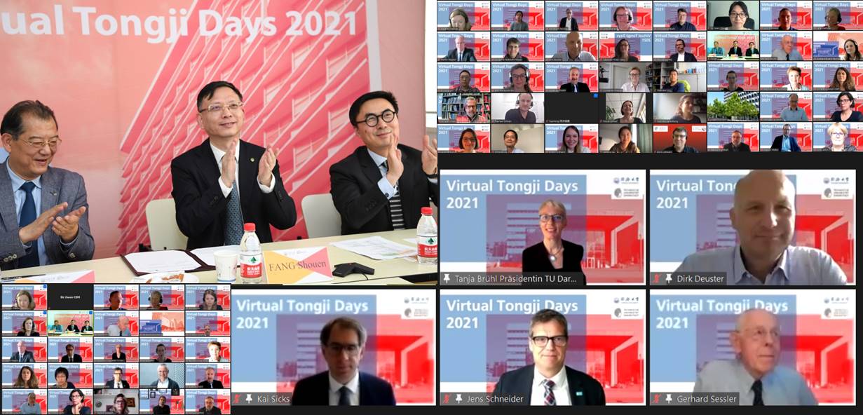 6月8日,我校与德国达姆施塔特工业大学(Technische Universität Darmstadt)共同举办的“2021年线上同济日”活动拉开帷幕。达姆施塔特工业大学校长塔妮娅·布吕尔(Tanja Brühl)、副校长延斯·施耐德(Jens Schneider)、物理学教授盖尔哈特·塞斯勒(Gerhard Sessler),德国学术交流中心(DAAD)秘书长凯·西克斯(Kai Sicks),博世力士乐(Bosch Rexroth)人力资源高级副总裁迪克·多伊斯特(Dirk Deuster),校党委书记方守恩,副校长雷星晖、娄永琪出席开幕式并致辞。