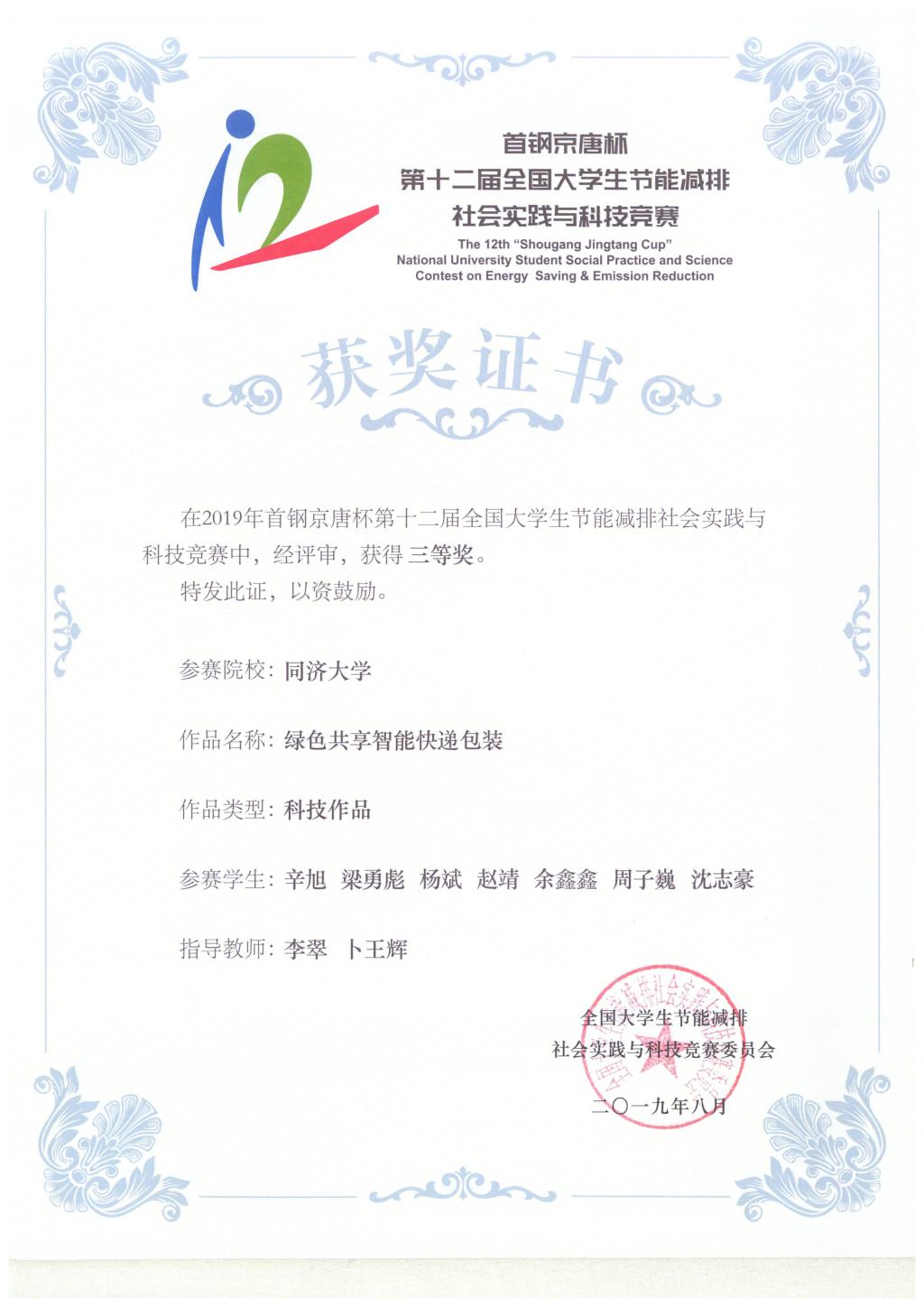 这项成果获得第十二届全国大学生节能减排社会实践与科技竞赛三等奖,申请了2项实用新型专利、2项国家发明专利。