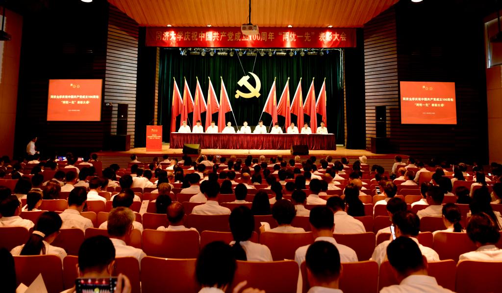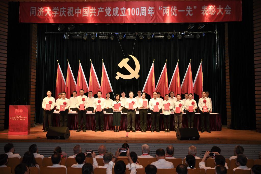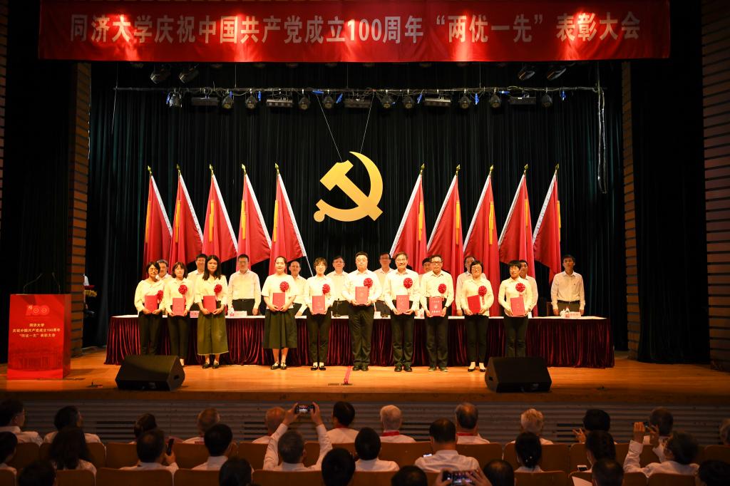 在中国共产党百年华诞即将到来之际,6月29日下午,同济大学庆祝中国共产党成立100周年“两优一先”表彰大会在四平路校区一·二九礼堂隆重举行,回首中国共产党团结带领全国人民不懈奋斗的百年光辉历程,表彰学校涌现出来的一批优秀共产党员、优秀党务工作者和先进基层党组织,并为“光荣在党50年”的老同志代表颁发纪念章。