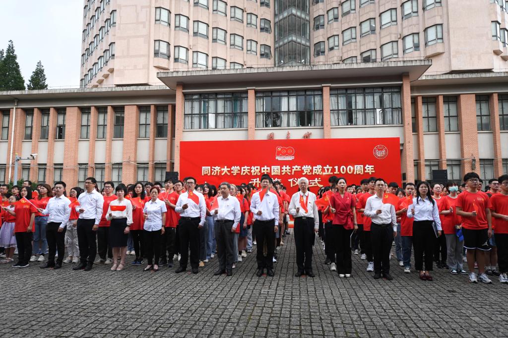 五星红旗冉冉升起,致敬中国共产党百年光辉历程。7月1日清晨,同济大学分别在四平路校区、嘉定校区、沪西校区和沪北校区隆重举行庆祝中国共产党成立100周年主题升旗仪式,向中国共产党百年华诞送上美好祝福。校党委副书记彭震伟,机关职能部门、相关学院负责人分别出席四校区升旗仪式。