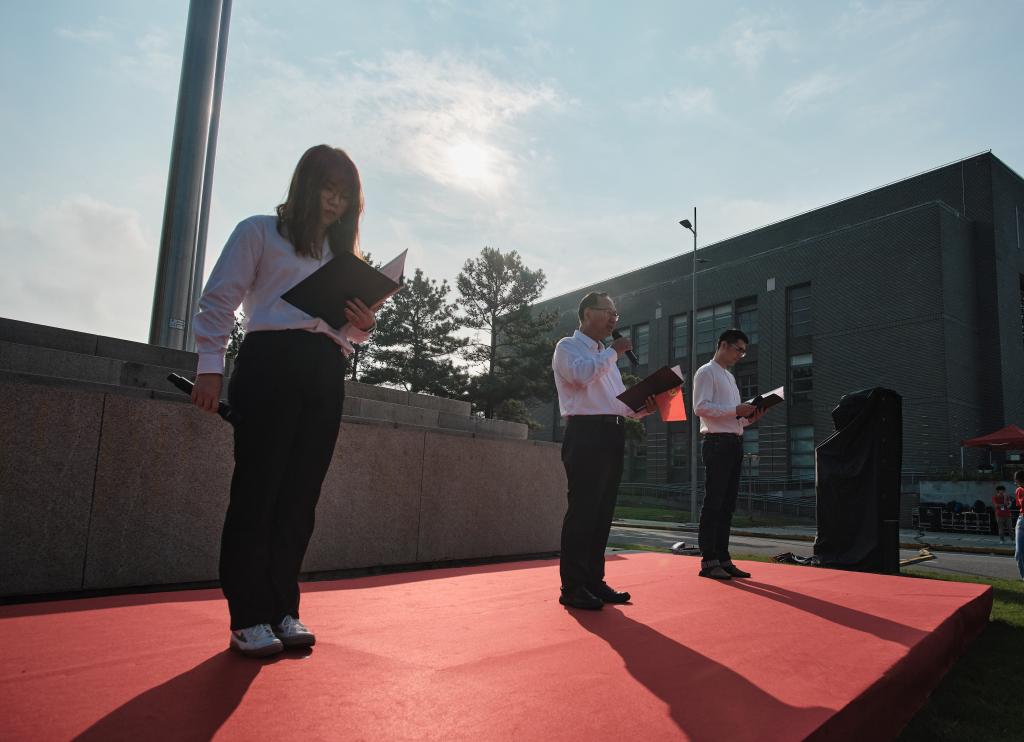 同济师生面对鲜艳的五星红旗,高歌一曲《没有共产党就没有新中国》。歌声嘹亮,爱党爱国情怀在心中澎湃、激荡。他们表示,生逢伟大盛世,深感重任在肩。他们将秉持“与祖国同行、以科教济世”的优良传统,永远跟党走,砥砺奋进,为党为国奋力书写壮美动人的时代华章。