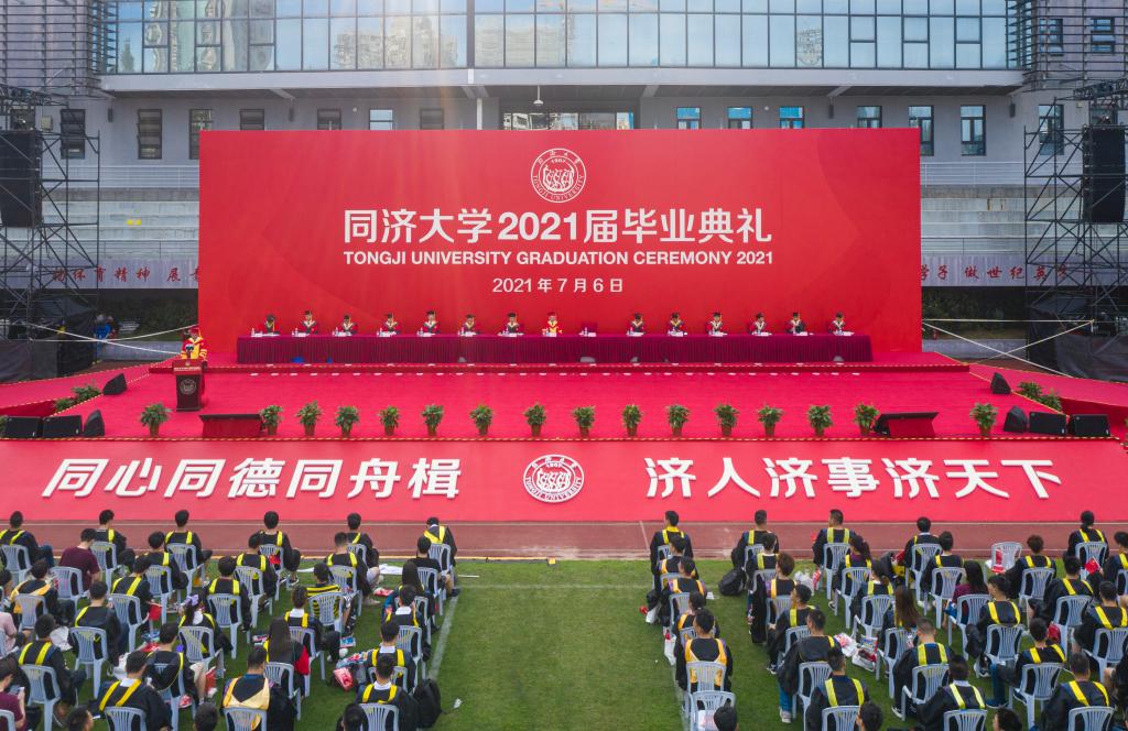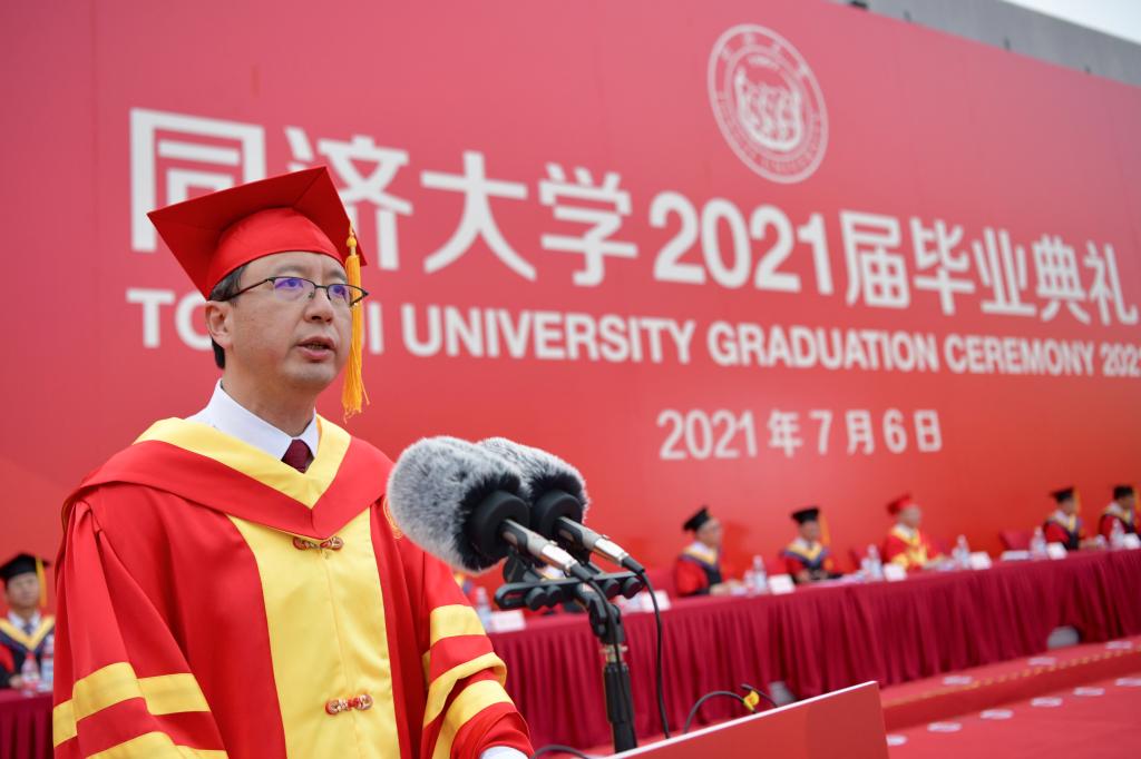 7月6日傍晚,同济大学2021届毕业典礼在四平路校区一·二九运动场隆重举行。典礼上,校长陈杰以《开启新征程 彰显新担当 矢志新奋斗》为题发表讲话,满怀深情地寄语同济2021届毕业生们。