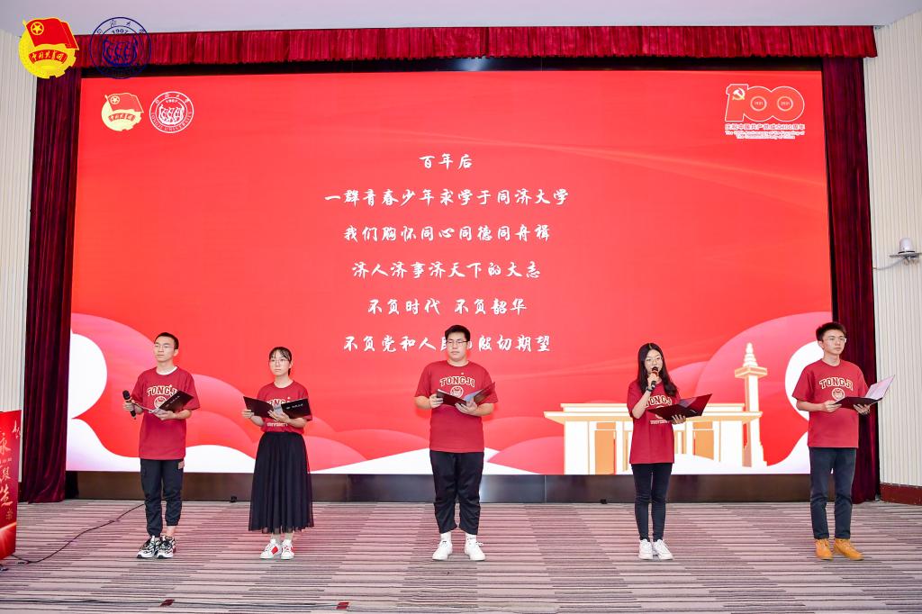 会上,2020年上海市“知行杯”获奖项目《乡村共振,设计助农——决战脱贫攻坚,我为家乡代言》代表张琪、《把家乡文化编成书——青年共创行动激活乡村文化振兴》代表王桨现场讲述实践故事,分享了实践经验。吴求德等5位暑期社会实践学生代表以诗朗诵的形式,表明同济学子投身社会实践、贡献青年力量的信心与决心。