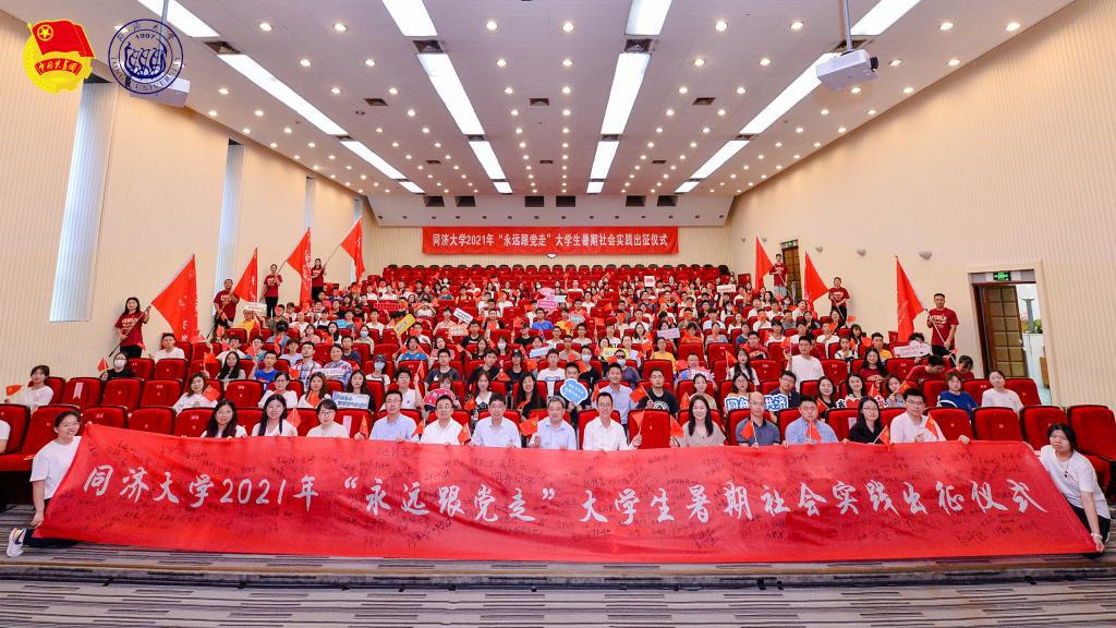 7月8日,同济大学2021年“永远跟党走”大学生暑期社会实践出征仪式在四平路校区举行。校党委副书记吴广明,校长办公室、党委宣传部、教师工作部、学研工部、科研管理部负责人,各学院团委书记,2021年暑期社会实践指导教师代表和实践团成员代表出席了活动。吴广明等为实践团队代表授旗。全体同济人挥旗出征并进行宣誓,同济大学2021年大学生暑期社会实践正式启动。