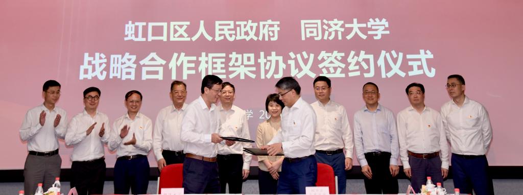 7月14日,同济大学与虹口区人民政府签署战略合作框架协议,双方将聚焦医疗要素配置、科技产业支撑、规划设计研究、教育资源提升、区校党建联建、城市治理数字化转型、体教融合发展等七个领域开展合作,共同把北外滩打造成为新时代都市发展新标杆、核心功能重要承载地、新发展理念实践区,为上海建设成为具有全球影响力的长三角世界级城市群的核心引领城市作出更大贡献。