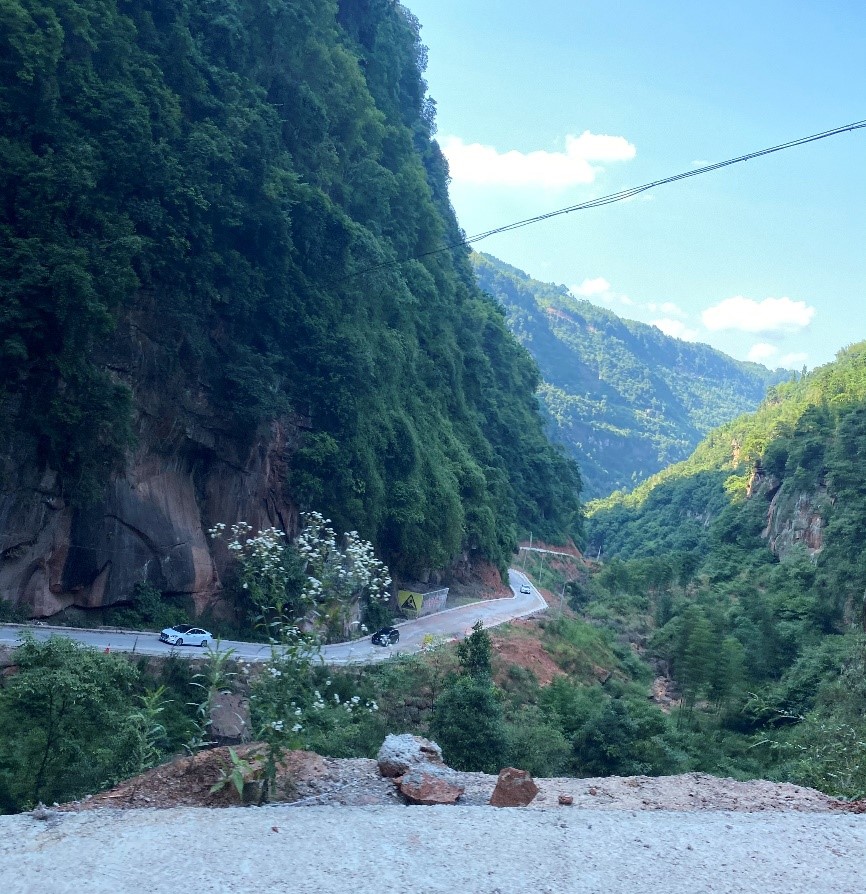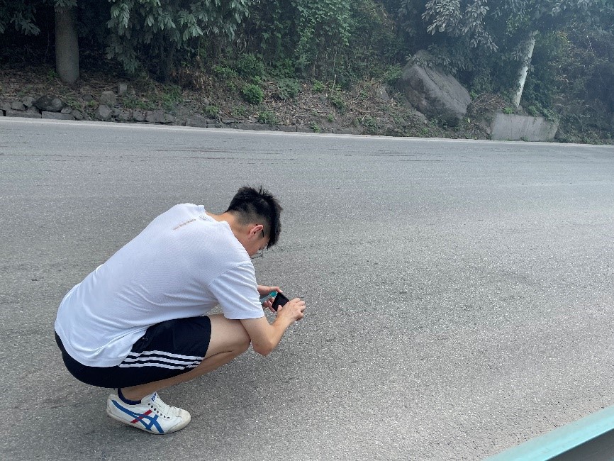 “与祖国同行,以科教济世”,同济交通人从未停止探索的脚步。队员们顶着烈日酷暑,将自身发展与国家发展需要相结合,勇担时代责任,积极投身交通强国建设中,在学院副院长白玉教授带领下,一路沿着赤水河畔的G546公路,用脚步和相机丈量和记录着农村公路沿线的安全状况,为赤水市建设“安全、便捷、美丽、舒适”的乡村公路贡献自己的专业力量。团队成员发现山区公路由于长期承载重型货车,龟裂、补丁、坑槽、沉陷、纵横向裂缝、车辙等路面病害较多,在盘山公路上存在较多落石,护栏和反光镜缺失情况较多。据此,团队成员李瑞杰带领大家从山区农村公路养护维修的角度提出了改善建议,最终形成了“贵州省赤水市公路交通调研报告”。