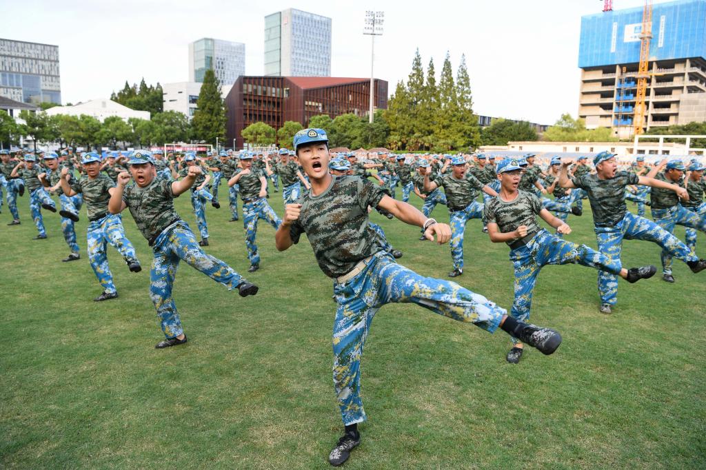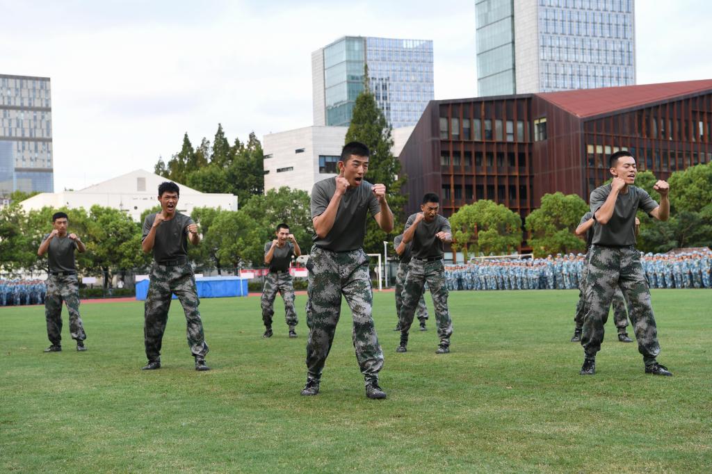 大会在慷慨激昂的军歌声中落下帷幕。此次军政训练时间为8月21日至9月3日,首次采取“6+8”模式,六天线上八天线下结合施训。除了政训及队列动作训练之外,此次军训还会有VR模拟射击训练、行军拉练、水上军训、疫情防控专题教育、板报评比等多项精彩纷呈的军事科目及主题活动。学校2020级4190名本科生参加军训。(图/周游、武装部)