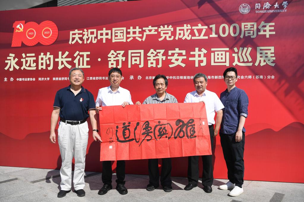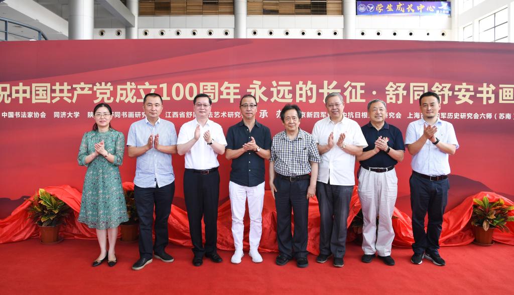 9月23日,庆祝中国共产党成立100周年“永远的长征•舒同舒安书画巡展”在嘉定校区同德楼揭幕。展览由中国书法家协会、同济大学、陕西省舒同书画研究院、江西省舒同书法艺术研究会主办,北京新四军暨华中抗日根据地研究会、上海市新四军历史研究会六师(苏南)分会承办。这既是同济大学推进党史学习教育的一次重要活动,也是同济大学2021年艺术节的一场重要展出。